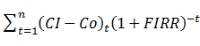 财务内部收益率FIRR可以借助项目投资现金流量表计算。财务内部收益率是指项目计算期内净现金流量现值累计等于零时的折现率,即FIRR作为折现率使下面的公式成立:
