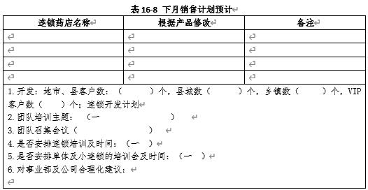 表16-1、表16-2由管理连锁药店的OTC医药代表填写,报省区抄报公司市场部,转老总分析市场用。