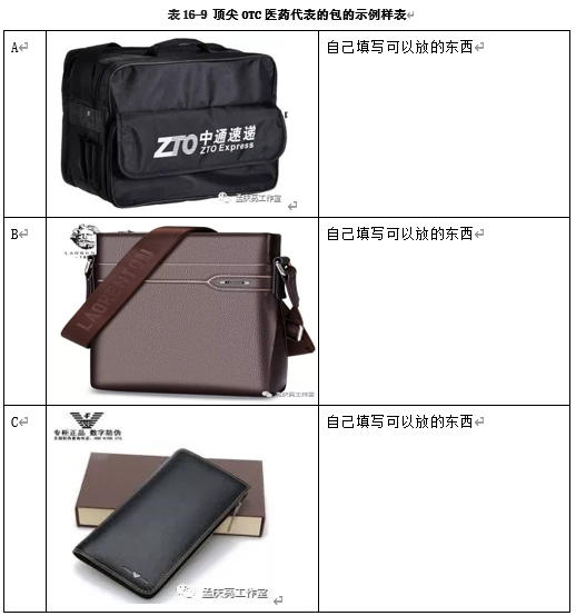 顶尖OTC医药代表的包见表16-9。