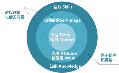 其中外层是易于培养与评价的,中层及内层是难以评价与后天习得的。面试官可以结合洋葱素质模型的几个维度设立由内而外的素质项目,逐层进行考核。