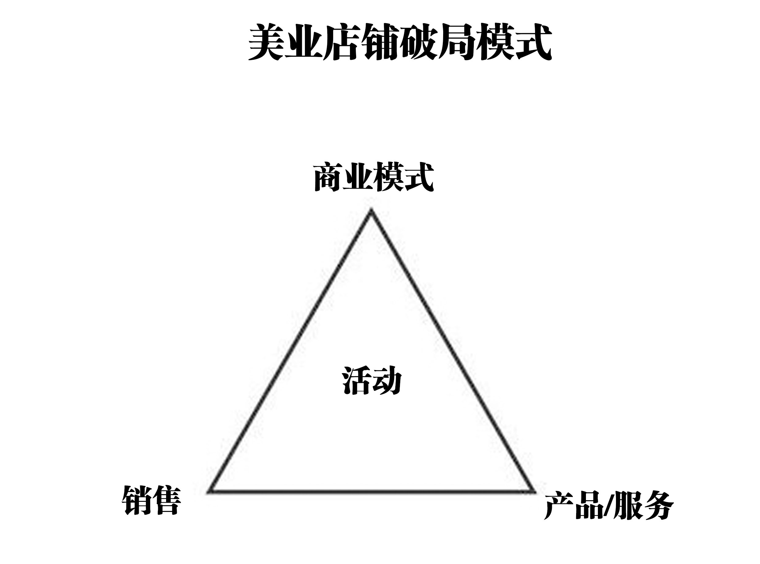 美业店铺破局模式 =(商业模式+销售+产品/服务)* 活动。