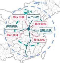 中原城市群是典型的高铁城市群,其周边辐射城市沿高铁线分布。按照国家高铁规划,郑州将建成全国的“高铁心脏”,架构“米字型”高铁格局。