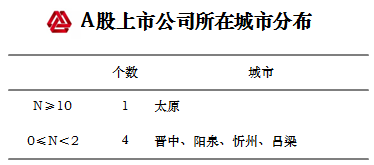 上市公司数量的多少是反映一个城市经济活力的重要指针。 太原城市群A股上市公司数量相对较少,主要集中在太原市。