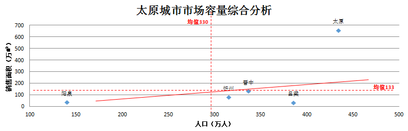市场容量从商品住宅销售面积和常住人口两个维度考虑。人口规模较大且距离轴线向下偏离越大代表市场潜在容量越大。重点关注城市有吕梁,一般关注忻州及阳泉。