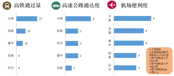 城市是整个区域交通的枢纽,其交通的便利度和通达性是我们关注的重点。城市轨道交通是大城市房地产市场的重要助推器,影响大城市的板块市场,但本书重要研究城市之间的房地产市场对比,故暂未把城市轨道交通纳入研究范围。