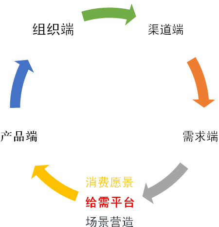 需求端:从组织端到产品端、渠道端都是围绕着需求端在做铺垫、服务。只有真正了解消费者诉求、愿景,才能与消费者产生共鸣,产品才具有生命,才能换来有效塑造消费者的口碑宣传与品牌美誉度。