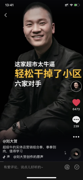 笔者有一个视频内容,讲的是自己小区六号楼超市的营销案例。因为案例详细,技巧实战,可操作性强,被至少上千个营销型账号直接借走创意。有人复制笔者的内容,还有很多账号直接把笔者的声音元素挪到自己的视频里。如图5-17所示。