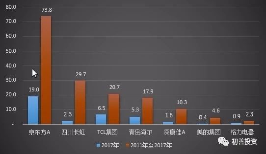 比如比较市场上主要黑电和白电企业2011年至2017年7年的存货减值,长虹、TCL、海尔和康佳等远远高于美的和格力。如图5-7所示。