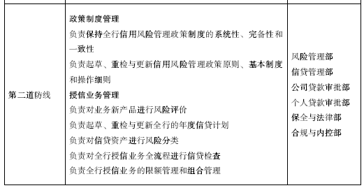 以渣打银行经典的“三道防线”设置为例,其各部分功能如下。