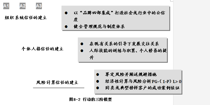 对照信任的三阶模型,企业可以通过下面的三阶行动来建立与客户之间的信任关系,如图8-2所示。