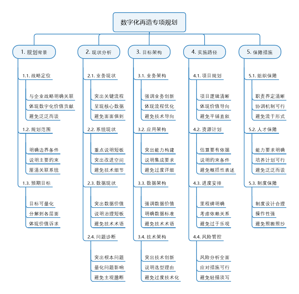 图表 7 数字化再造专项规划提纲脑图