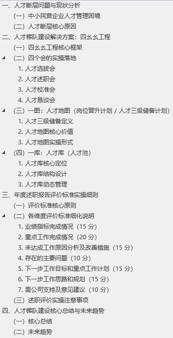 表面上看,中小民营企业是缺人、有人无用、无人可用,但根本原因在于缺少一套有效的人才梯队建设机制,过度依赖外部招聘。对于中小民营企业而言,80% 的中基层岗位必须从内部培养。很多企业已成立数十年,不少已完成二代接班,在行业内做到了专精特性,但始终未将人才管理、人才体系建设纳入重要日程。无论是人才选拔机制、培养机制还是激励机制,最终目的都是培养出适合公司发展需要的人才,而人才梯队是否有储备人才(包括三级储备),是检验这三个机制成效的关键标准。