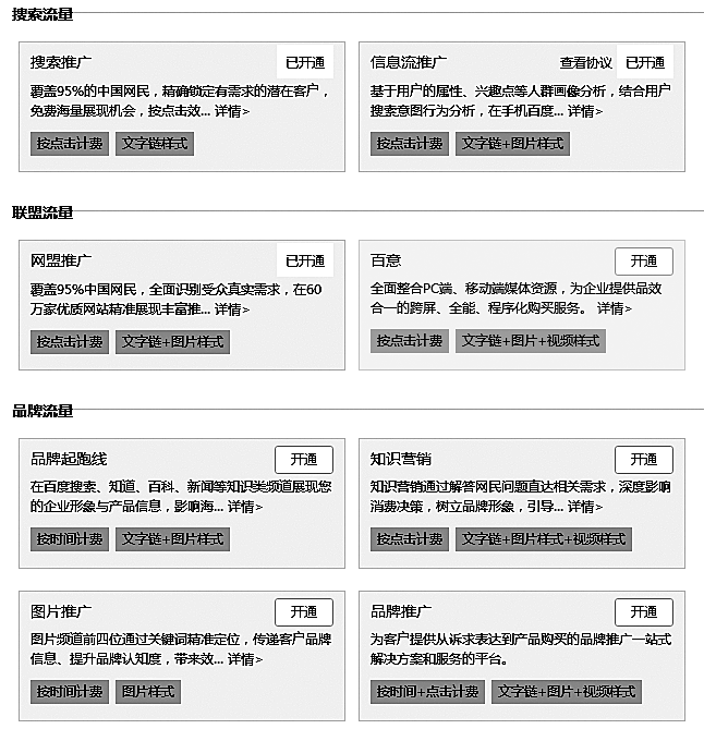 图3-4 百度主要的付费推广产品