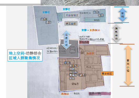 委托我们做战略定位策划的地块在古城内。我们发现类似的地块,加上没有很好地利用的地块占平遥古城的80%,来平遥的游客基本上在“土字街”(由于方位习惯问题,其实是“干字街”)活动,或到几个典型的古建院落参观,所以,这些地块、区域的再开发利用、如何利用变得非常重要,直接关系古城未来的发展。
