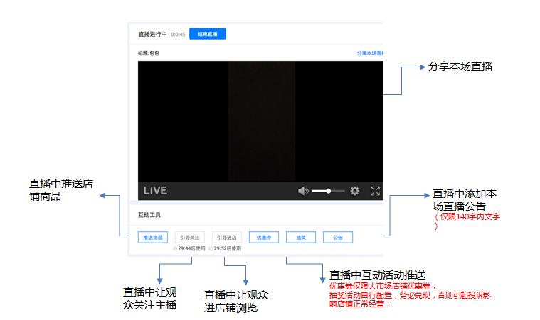 这是中控台界面。正常来说B类直播和C类直播不一样,B类的直播更注重工厂实力、车间、卖场等,主要以卖货为目的。如图9-21所示。