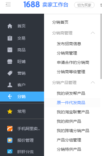 2)路径是:我的阿里后台——1688卖家工作台——分销——淘货源分销。
