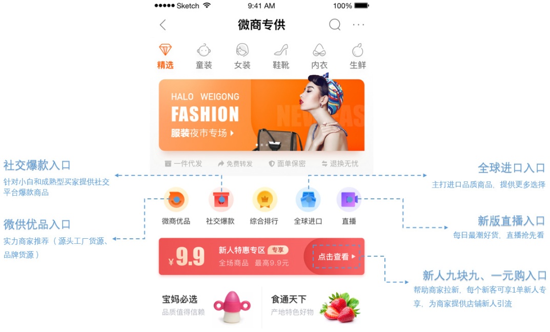 以上是微供的营销场景,微供市场在2018年8月刚刚升级,升级后的内容如图9-30所示。
