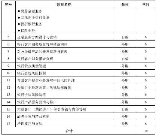 某银行高级客户经理资格认证培训课程设置
