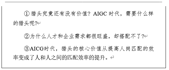 下一个时代,猎头的核心价值从提高人岗匹配的效率变成了人 和人之间的匹配效率的提升。