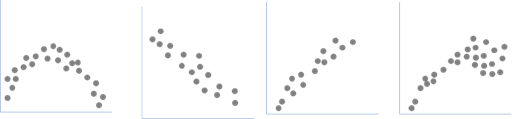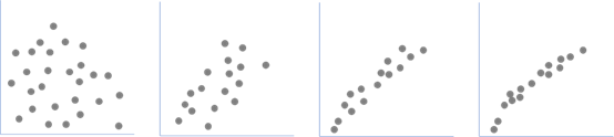 图8-27表示了两个变量之间的相关程度。其中,图(1)表示两个变量之间没有相关性,图(2)表示弱相关,图(3)表示强相关,图(4)表示高度相关,几乎是完美的正相关。