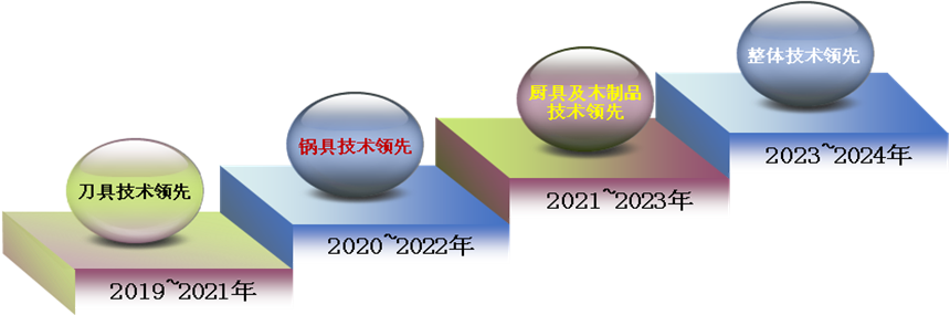 依据五年营收目标,某厨房用品企业技术职能确定执行技术领先策略,具体如图1.10所示。