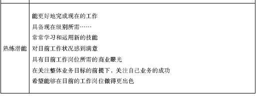 花旗银行人才潜力分为三个等级,分别为转型潜力、成长潜力与熟练潜力三种。如表9-9所示。