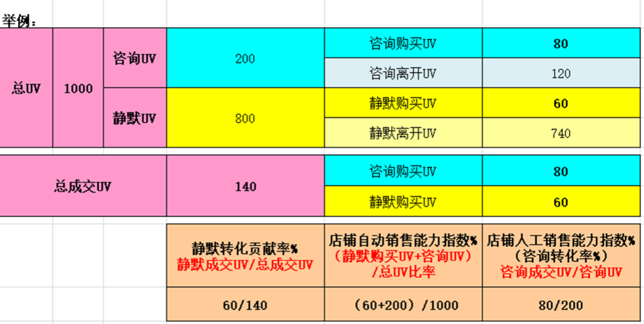 店铺自动销售能力指数=(静默购买UV+咨询UV)/总UV