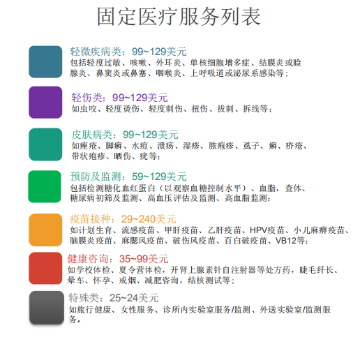 核心优势 | 1.就诊速度快,不需要预约,就诊方便 2.提供标准化服务 3.价格便宜:均价在69美元左右 4.运营成本较低 |