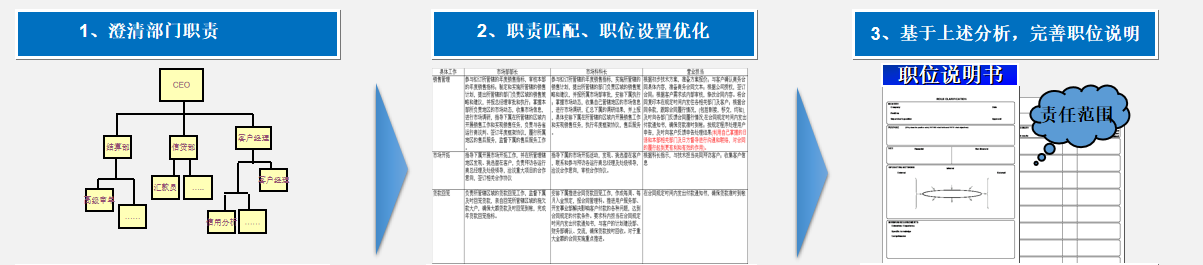 在管理学的角度,职位体系梳理也称为职位分析,通过职位分析明确职位的基础信息,职位在组织中的层级关系,职位的关键职责及任职条件,怎样评价完成工作的业绩。因此,本阶段的核心是工作分析,工作分析是职位优化、薪酬优化、绩效优化、人才管理和任职资格体系构建的基础工作,需要通过详尽的工作分析收集丰富的信息和资料,工作分析的结果是形成职位清单和各个职位的工作说明书。
