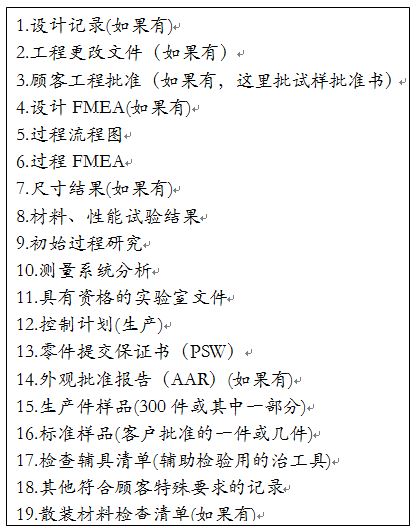 对于散装材料,所要求的PPAP 要素是通过散装材料检查表定义的,任何顾客特定要求必须在散装材料检查表里列出。参见表5-2-12。