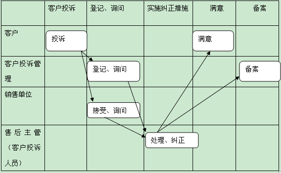 客户投诉管理职能或销售单位接到客户申诉的第一时间,应通知各负责区域市场的客户投诉处理人员深入现场调查处理。
