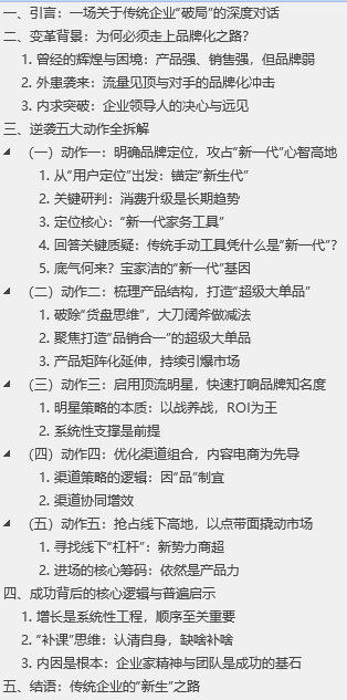 本场对话,王庆云老师抽丝剥茧,将宝家洁的逆袭之路总结为五大关键动作,并深入阐述了其背后的商业逻辑和决策思考。这不仅是一个案例的复盘,更是一套可供众多传统企业借鉴的增长方法论。