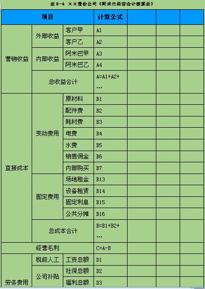 二是各阿米巴单元在一周期内所产生的费用和成本。阿米巴单元的成本包括原材料成本、辅料成本及人力成本(有些企业不愿意将人力成本纳入到产品成本中,也是可以考虑的一种方式)等。阿米巴单元的费用,分成统计部分和分摊部分。统计部分指各阿米巴单元在运营过程中产生的费用,分摊费用指本阿米巴单元外的部门或集团所产生的费用需要本巴承担的部分。
