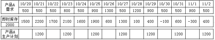 如果安全库存量处于负数,意味着生产量不能满足需求量。如表2-13中的10月29日的生产:因为前一天的库存量只有100kg,未达到安全库存数量,而10月29日的产出(1200kg)在交付完29日的需求后剩余400kg不足以满足10月30日的需求。此时,生产计划人员就应马上向业务部反馈,通知业务部对30日交付的订单进行分货,同时在接收订单时就告知客户30日当天的交付不能满足并协商修改交付日期。