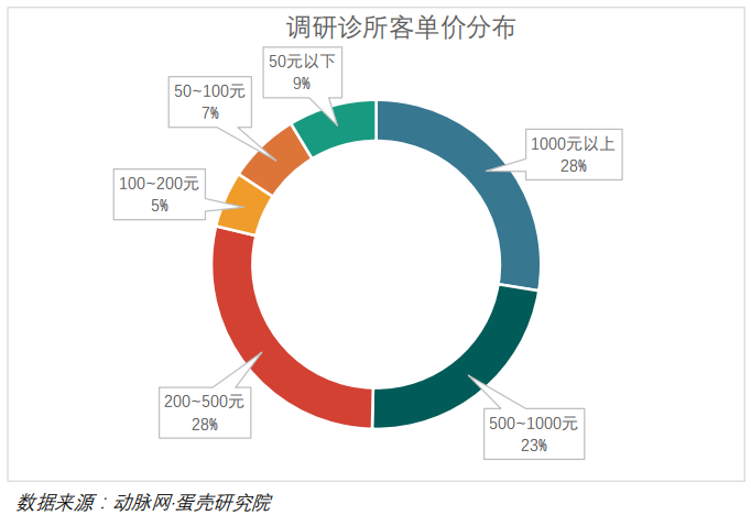 定位不同的诊所,诊费设置有较大的差别。即使同样定位于中高端,一二线城市的诊费差异也很大。根据蛋壳研究院的调研,传统个体诊所的诊费通常在20元以内,和公立医院的普通门诊挂号费接近。所以,这类诊所为了实现盈利,药占比相当高,输液成为主要的营收来源。