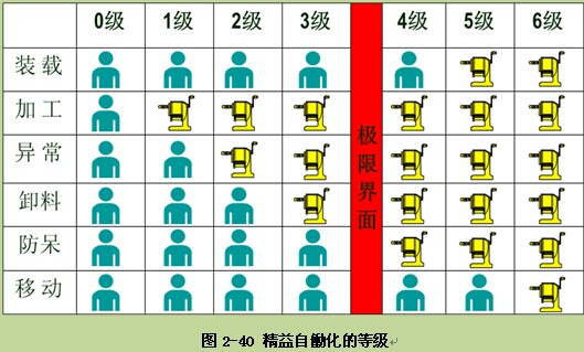 根据自働化要素实现的程度,我们可以将自働化分为六个等级,如图2-40所示。