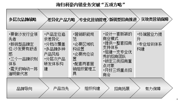 利豪家具内销业务发展须以品牌运营为引领,以企业关键转型为驱动,从多层次品牌战略、差异化产品方略、专业化营销管理、新锐型招商推进、实效类营销保障等方面着眼推进,稳步提升,如图4-2所示。