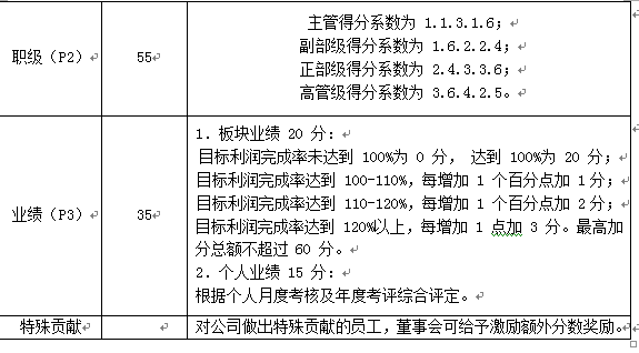 (注:Rn为某对象的职级系数,n为有资格参加本次计划的总人数,∑R为所有对象相应职级汇总)