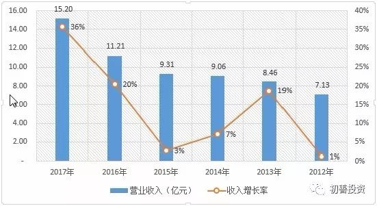 (1)笔者看涪陵榨菜的营业收入,由2012年的7.13亿元增长至2017年的15.20亿元,复合增长率为13%。除了2012年和2015年收入增速低于5%,尤其是近三年,收入增速明显提升。如图2-18所示。