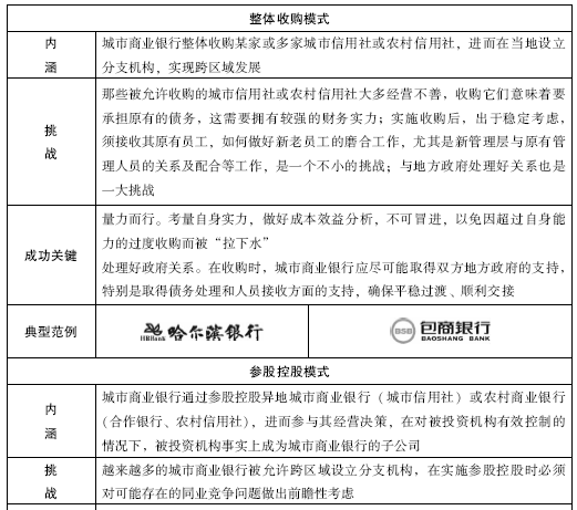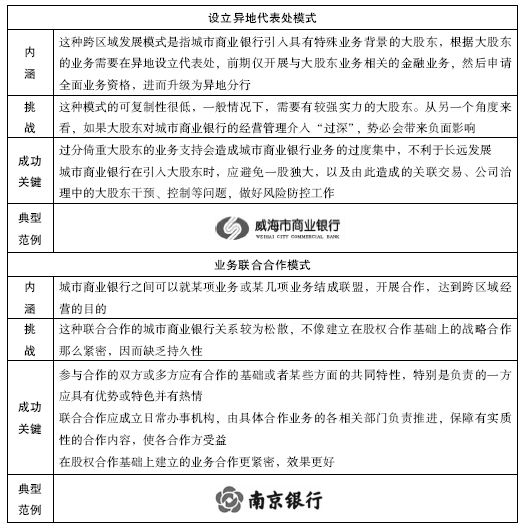 整体收购城市信用社、接收国有商业银行网点和借助大股东设立代表处的模式,均有其特殊性,因而只是个案,不具备可复制性;业务联合合作的模式可作为辅助模式,不能作为主流模式。