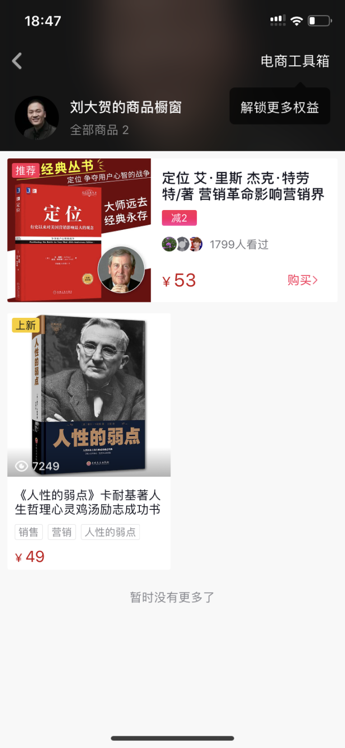 在“商品橱窗”的“电商工具箱申请”解锁“视频电商权限”。15天内,发布2条以上包含商品的视频,就可以获得视频电商权限。粉丝超过3000+,并且开通了视频电商权限,就可以直接获得直播电商权限,可以在视频、直播中卖货挣钱。