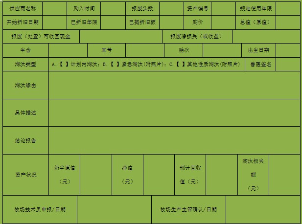 牧场名称: 申请淘汰日期: 年 月 日