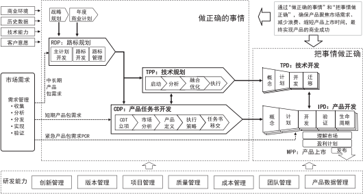 在集成产品开发(IPD)的管理体系中,通过“做正确的事情”确保产品聚焦市场需求,通过“把事情做正确”提高效率、减少浪费、降低成本,确保产品符合市场要求。两者结合,最终实现产品的商业成功。