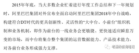 组织的中台,有别于直接面对客户和市场的前端面团队,将前端团队需要的共性资源、能力集中起来,为前端团队提供更专业、更集中有效的支撑,有一些业务共享中心组织的意思,例如阿里的共享业务事业部。