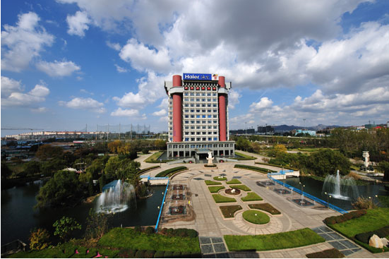 2012年,创牌中心大楼之侧,海尔再次建造完成董事局大楼,其外观如海浪、如云彩,主要体现了在互联网时代,一切都有很强的不确定性,企业从线性变成非线性的自组织,永远从混沌到有序。