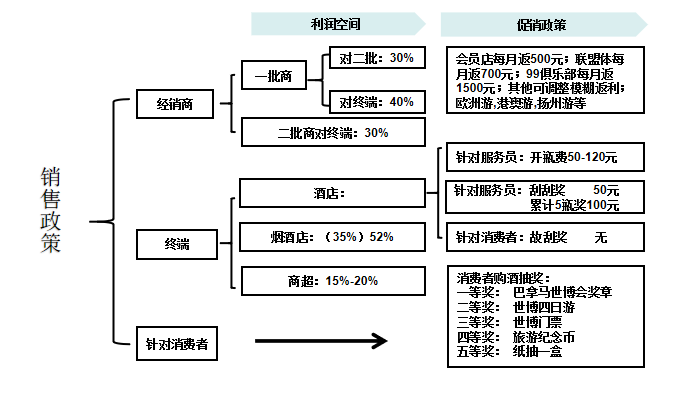 十八酒坊重渠道运作,轻消费者促销。给予经销商相对较大的利润空间,通过99财富俱乐部、联营体等形式紧密联系渠道成员,开展酒店终端大力促销,部分酒店终端的促销费用(开瓶费+刮奖卡+累积奖)已接近售价。通过高力度的渠道促销和核心消费者公关操作,十八酒坊的主销价格已显现向上拉升的趋势。