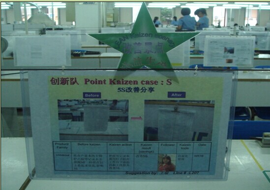 在精益改善中,很重要的一项就是目视化,在很多实行了精益管理的企业特别是已经形成了精益文化的企业,我们通常可以看到它们特别重视精益改善成果的展示,哪怕是一个小小的改善也会做成精益景点,让员工的改善成果得以展示。这样不仅增强了员工参与改善的积极性,还增加了员工的自豪感和荣誉感。