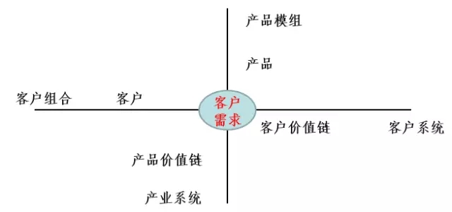 沿着产品这条线去思考,比如,产品环节——重新定义产品,或者把产品卖给不同的客户;产品模组——沿着原有的产品进行延伸,进行模块化或者组合化;产品价值链——如设计、采购、生产、销售、服务、废品回收等,是否可以对某个环节进行战略创新,形成新的商业模式;产业系统——整合全产业价值链进行战略创新。可以沿着客户这条线去思考,细节就不再赘述了。
