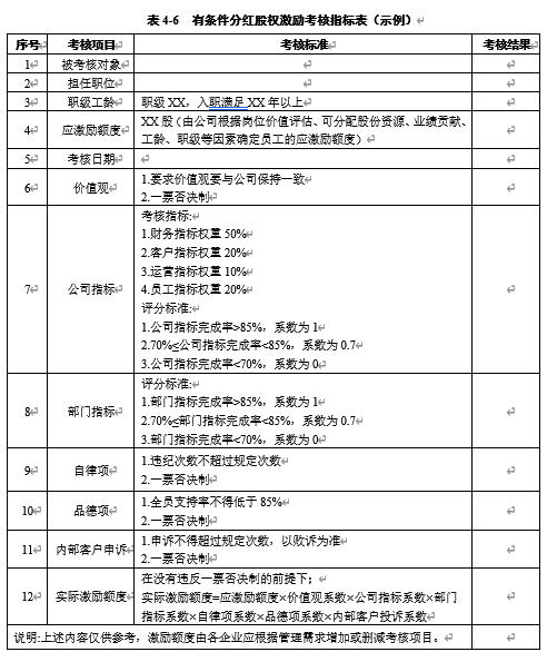表4-6 有条件分红股权激励考核指标表(示例)