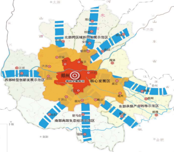 2、中原城市群受到周边城市群的挤压,部分外围城市与其他城市群交叉重合,面临新的选择;